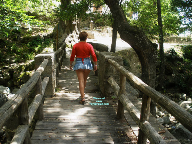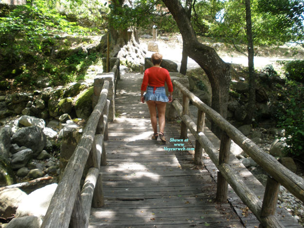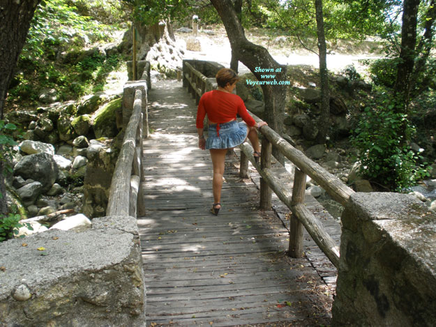 viendo el rio pasar por debajo y falda subida